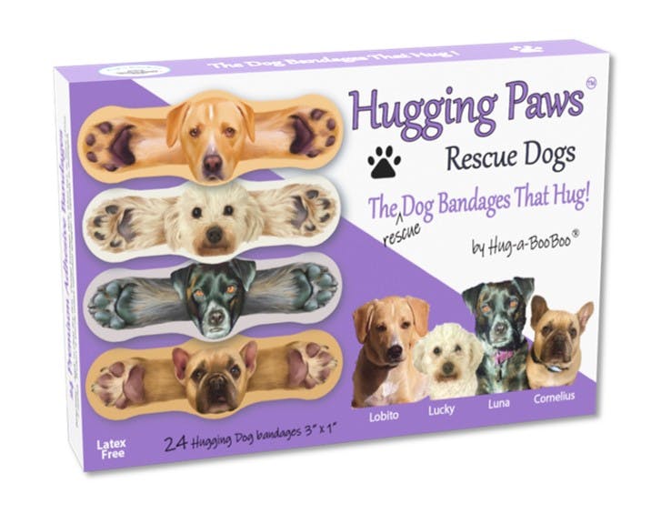 Hug-a-BooBoo is also creating some designs aligned with various charitable causes they support, such as first responder bandages with proceeds going to the Tunnel to Towers Foundation, and a line of Hugging Paws Rescue Cats and Dogs bandages that support local animal rescues. In fact, the brand just donated to a local shelter to help a blind cat to have eye surgery and also to a makeshift shelter started by a vet in LA helping to save displaced pets from the wildfires.